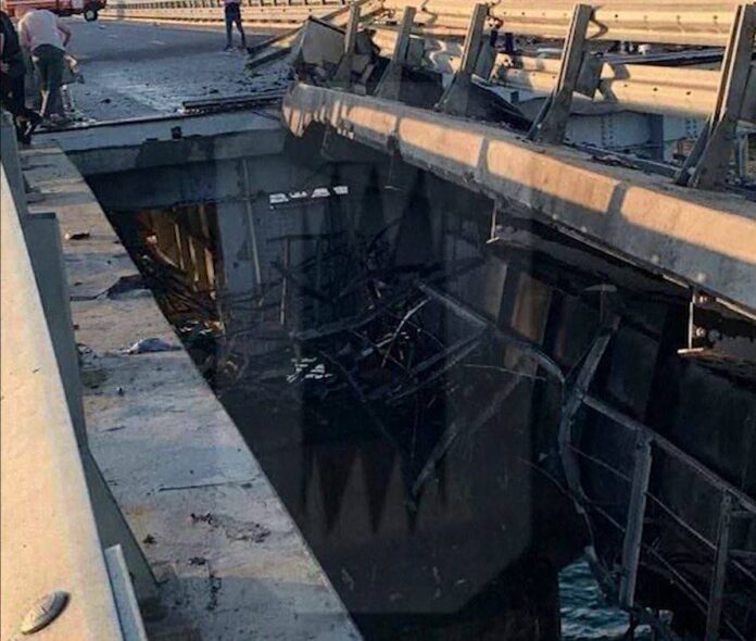 Рускиот независен онлајн дневник Инсајдер објави снимка од штетата што беше причинета утрово на Кримскиот мост. Британски „Гардијан“ пренесува дека дел од мостот, наменет за патнички сообрачај, исчезна и делува како да пропаднал во вода. Се наведува дека видеото е снимено од воз во движење по соседниот железнички мост кој не е оштетен.