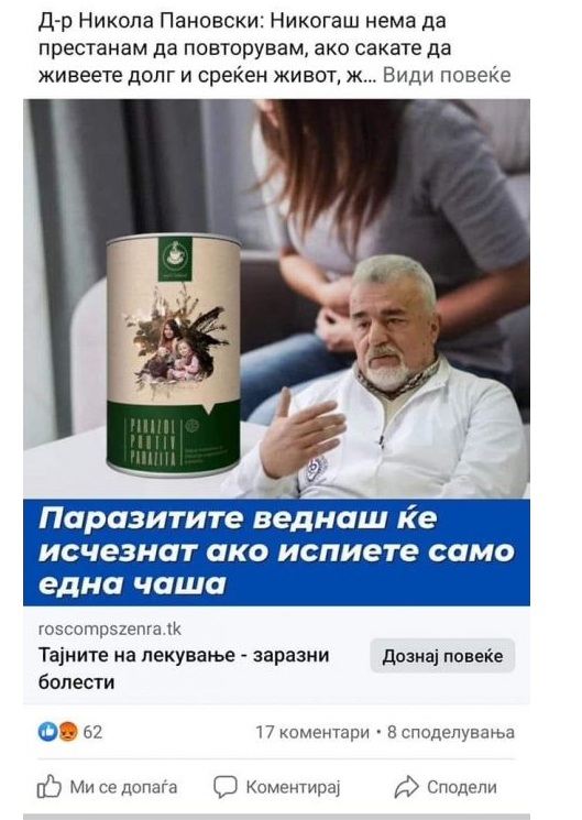 -Обвинетиот 34-годишник, како одговорно лице во правното лице, во периодот од ноември 2022 до април 2023 година, спротивно на условите утврдени во член 10 и член 96 од Законот за заштита на лични податоци, без согласност на тројца оштетени лекари, ги користел нивните лични податоци – слика, име и презиме за он-лајн продажба на два производа.Личните податоци на секој од оштетените лекари биле злоупотребени како тие со својот професионален авторитет да ги рекламираат и препорачуваат чаевите Паразол (Parazol) и Хипертеа (Hypertea), кои на територијата на државава ги увезувало и дистрибуирало обвинетото правно лице.Лажните интервјуа и постови, преземани и споделувани на повеќе веб страници и социјални мрежи, со здравствени тврдења и лажни медицински препораки за овие производи кои оштетените никогаш не ги дале, обвинетиот ги искористил за незаконита обработка на личните податоци и директен маркетинг. Надлежниот јавен обвинител му предложи на Судот да ги огласи за виновни и одговорното лице да го казни со единствена парична казна од 70 дневни глоби со висина на дневната глоба од 30 евра во денарска противвредност, а правното лице да го казни со единствена казна од 300.000 денари. Согласно предлогот на обвинителството, обвинетите по пресудата ќе треба да ги надоместат трошоците на постапката, а секој од оштетените лекари ќе има можност во граѓанска постапка да си го оствари своето имотно-правно побарување за нанесената штета со злоупотребата на личните податоци, соопштуваат од ОЈО.