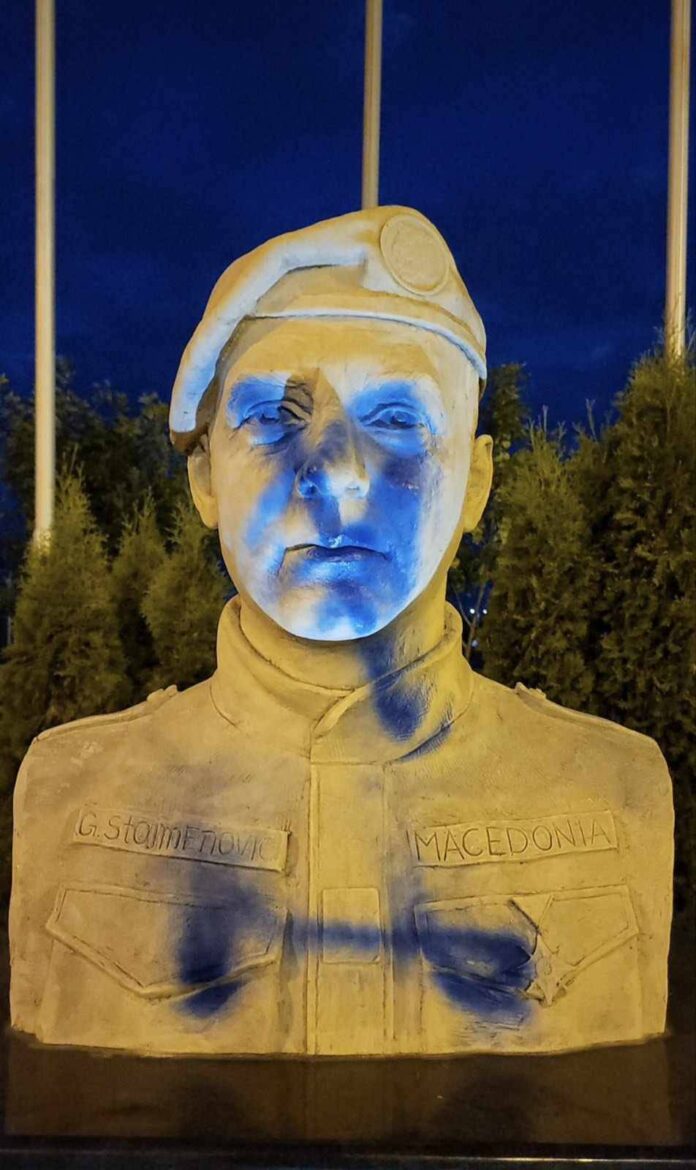 Вандалски чин е извршен во скопско Инџиково, каде е оштетена бистата на Горан Стојменовиќ, припадник на МВР кој загина во „Диво Насеље“. Случајот први го забележало семејството, кое е вознемирено. Бистата на Стојменовиќ е пречкртана со плава боја. Сето ова, во паркот посветен на него.