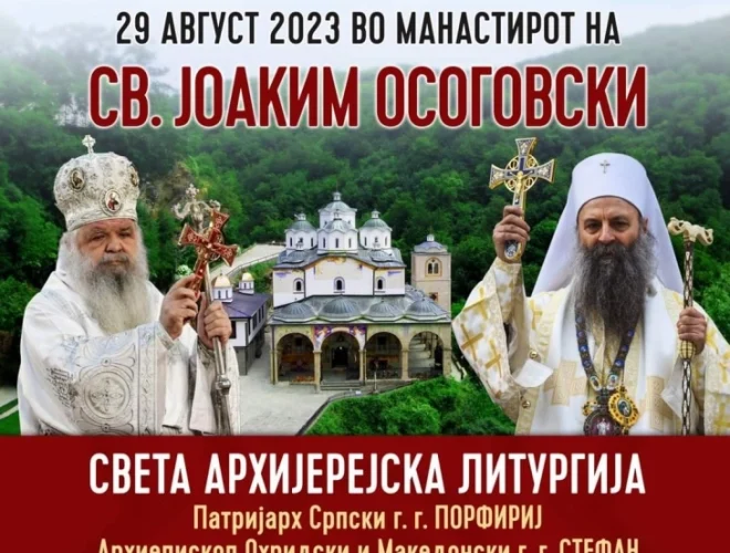 Стефан и српскиот патријарх Порфириј, според најавите, денеска треба да отслужат света архиерејска литургија во манастирот Св. Јоаким Осоговски кај Крива Паланка.